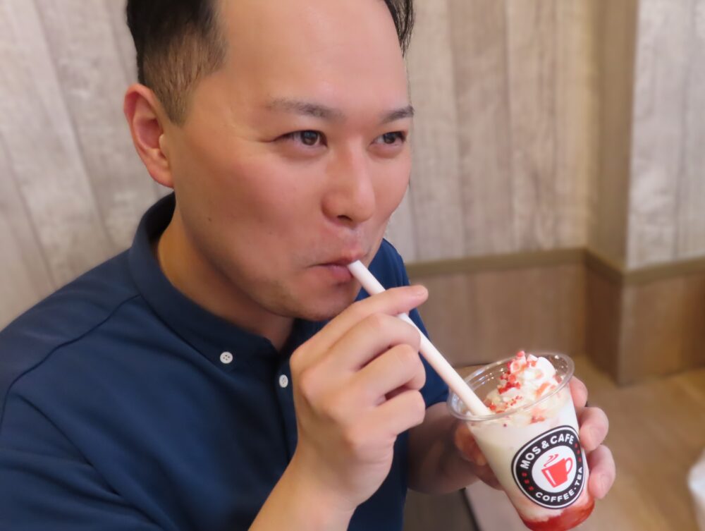 お次はモスバーガー&カフェでしか食べられない新デザート「デザートシェイク いちご」を実食!(実飲?)